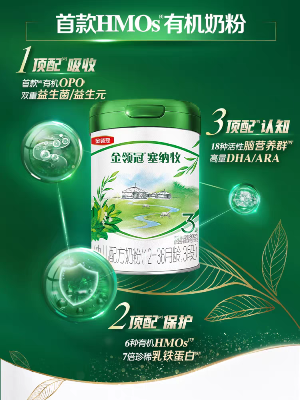 聚集科学喂食需求,金领冠在《超凡奶粉在我国》第二季纪录片推出了包括多项母乳中心功用研讨成果的金领冠宝宝奶粉的“六位一体母乳养分结构规范1.0”。根据此规范,塞纳牧进一步以多维度活性配方强化竞赛力,构建起“有机根底+多维养分”的两层壁垒。其配方中不只含有6种有机HMOs母乳低聚糖,可模仿母乳中肠道维护机制,助力宝宝肠道菌群平衡;还增加有机OPO,经过优化脂肪酸结构,促进钙等要害养分素的吸收,削减便秘危险;一起调配高量乳铁蛋白与有机活性蛋白OPN,两者协同为宝宝自护力供给支撑。这种配方规划并非简略堆砌成分,而是根据伊利金领冠23年我国母乳研讨沉淀,针对我国宝宝生理特征的精准适配,让有机奶粉的高端性从概念落地为可感知的养分价值。